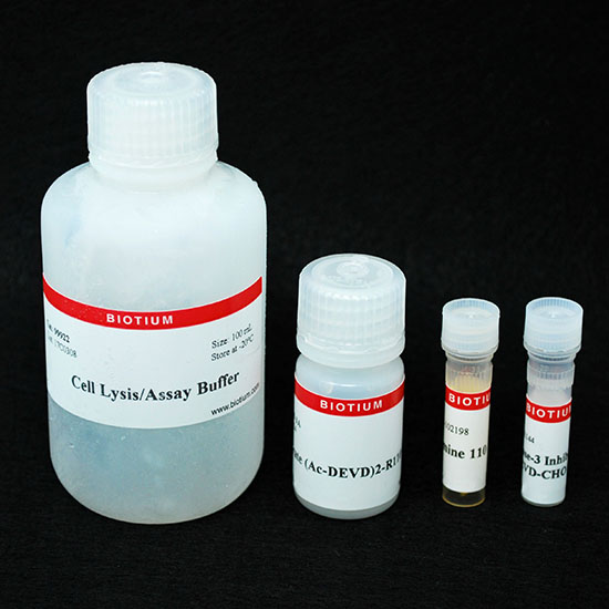 Caspase-3 DEVD-R110 Fluorometric HTS Assay Kit is a homogenous assay system for fast and highly sensitive detection of caspase-3 activity in mammalian cells. The kit is specifically designed for high throughput screening (HTS)-based assays. For real-time detection of caspase-3 activity in intact cells, learn about our novel NucView® Caspase-3 Substrates.