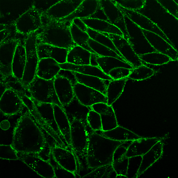 CellBrite® Fix dyes are designed to accumulate at the cell membrane, where they become covalently attached to membrane proteins. As a result, surface staining is well-retained after permeabilization or methanol fixation, with only a slight increase in intracellular fluorescence compared to formaldehyde fixation alone. CellBrite® Fix dyes are only weakly fluorescent in aqueous media but become intensely fluorescent upon membrane staining. This fluorogenic property of the dyes makes the staining very specific with low background. Due to their better water solubility, CellBrite® Fix dyes yield much more uniform staining compared to lipophilic carbocyanine dyes like DiO and DiI. The dyes are non-cytotoxic and do not readily transfer between cells.
