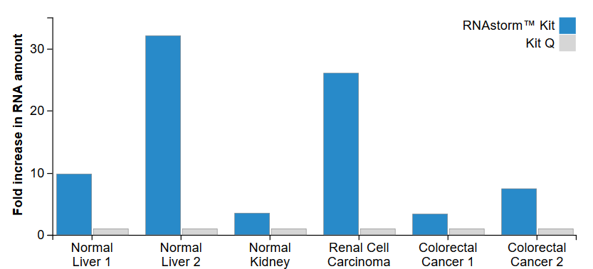 Formalin-fixed tissue samples are a challenge for nucleic acid extraction, often resulting in low yields of amplifiable DNA/RNA and poor performance in subsequent steps involving enzymatic manipulation, including reverse transcription and sequencing library preparation. Powered by proprietary CAT5™ technology, the CELLDATA DNAstorm™/RNAstorm™ 2.0 Combination Kit enhances the removal of formaldehyde-induced damage and provides dual DNA and RNA extraction with higher yield and quality. This allows for improved amplifiability for applications such as RNA-seq, qPCR, microarray, or other gene expression analysis.