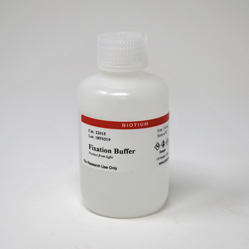 The Fixation Buffer is also available in the Flow Cytometry Fixation/Permeabilization Kit (23006). This Fixation Buffer is prepared with methanol-stabilized formaldehyde. For a methanol-free formaldehyde fixative, see our Paraformaldehyde, 4% in PBS, Ready-to-Use Fixative.