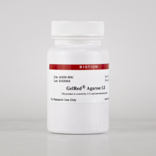 GelRed® Agarose LE is our ultra-pure molecular biology grade LE agarose pre-coated with GelRed® Nucleic Acid Gel Stain. With GelRed® Agarose, there is no need to handle concentrated fluorescent dye while preparing your gel, for greater convenience and safety.