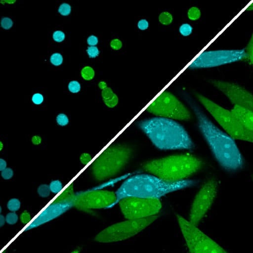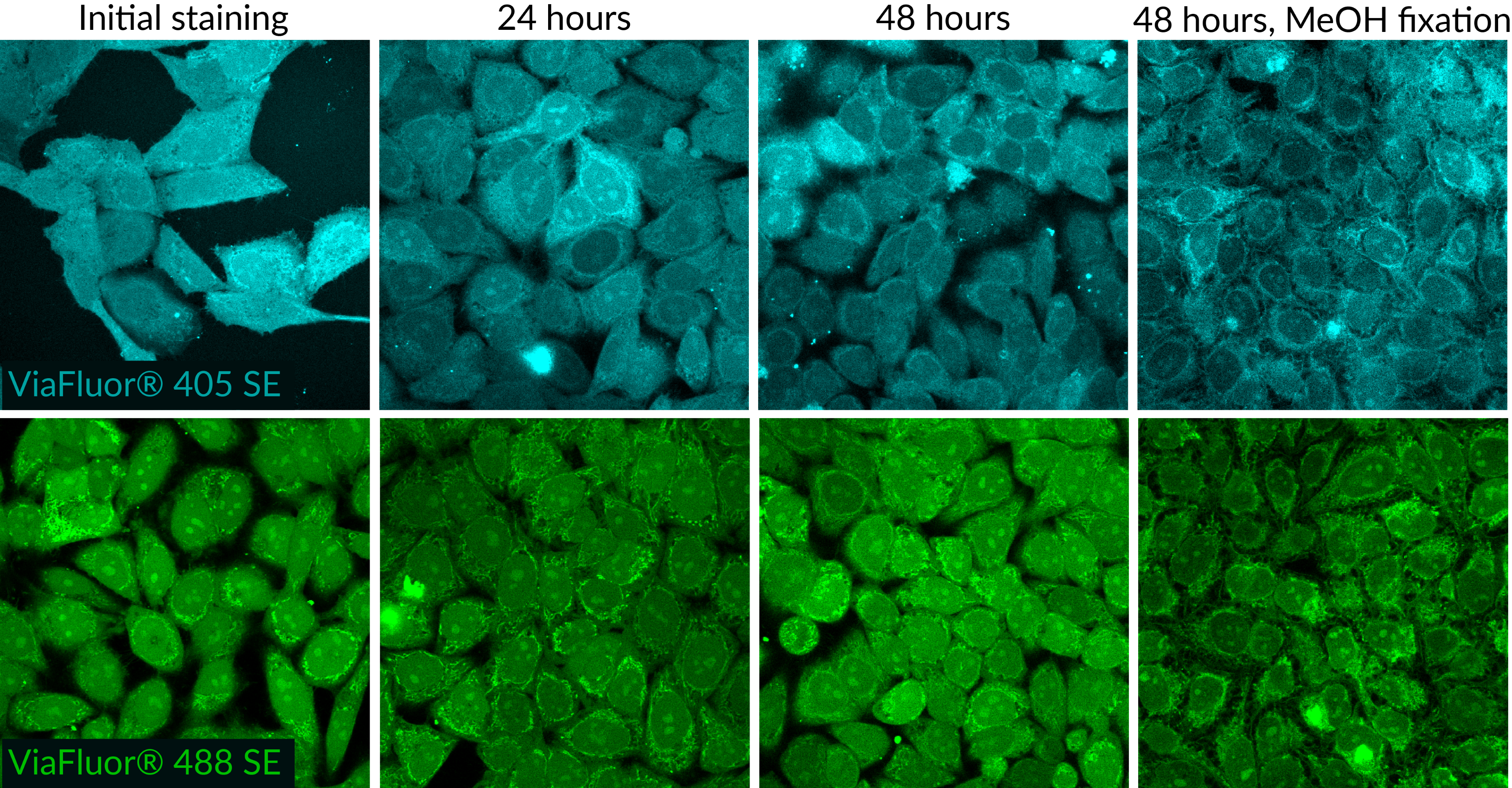 ViaFluor® SE dyes also can be used for imaging cell morphology or identifying cells in co-culture by microscopy. Because the staining is non-toxic and well-retained, it can be used for imaging live cells over time. See our Tech Tip: Using ViaFluor® SE Stains for Cell Tracing and Co-Culture.