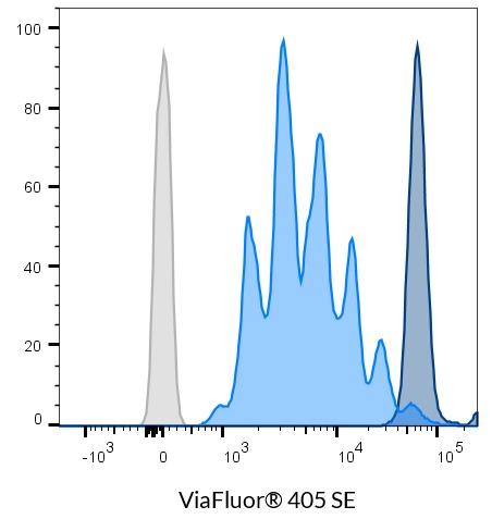 | ViaFluor® 405 SE Cell Proliferation Kit | 30068 | 408/452 | Pacific Blue® | • Track cell division by dye dilution using flow cytometry • ViaFluor® 488 is a unique, improved green dye to replace CFSE • ViaFluor® 405 replaces CellTrace™ Violet • ViaFluor® 650 replaces CellTrace™ Far Red |